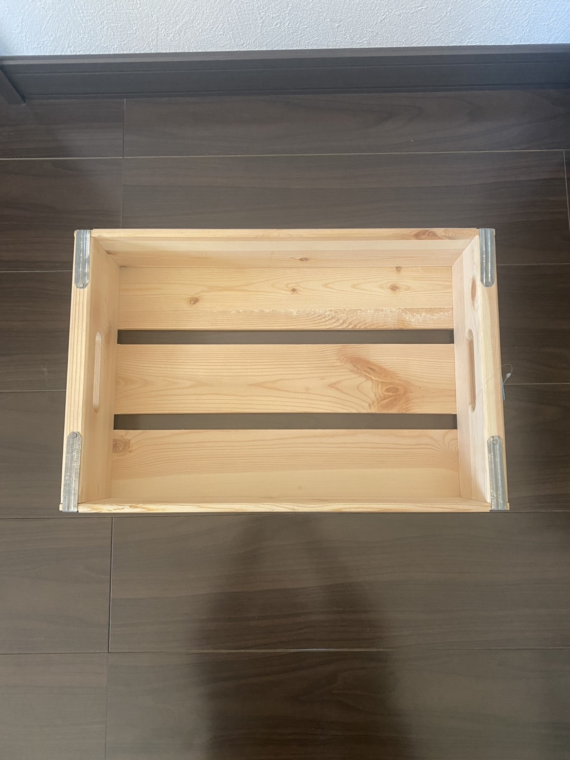 木製の収納ボックス。元々は瓶のドリンクを運ぶ為にアメリカで作られていたリバイバル商品。使い込んでいくと、木製ながらのアジが出てアンティークな感じになっていきます。中に仕切りは無く使い方は自由自在です! ・サイズ W450/D295/H110mm